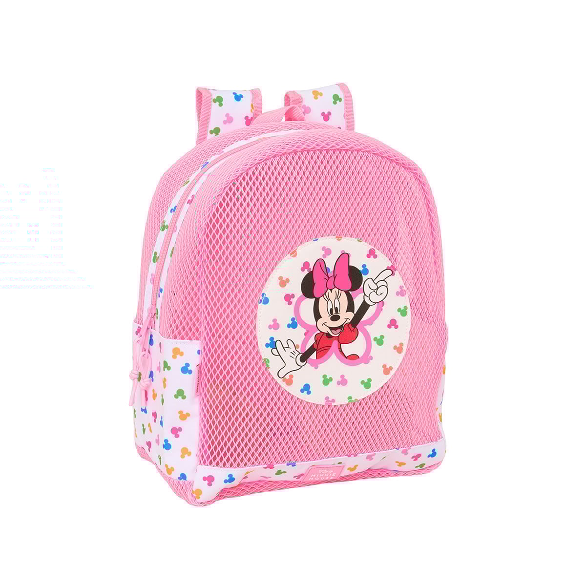 - Diseño: Mochila anti-arena con estética de Minnie Mouse en tonos rosas, con ilustraciones alegres y detalles infantiles que la hacen muy atractiva para los más pequeños.