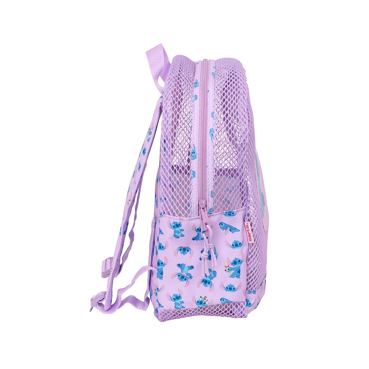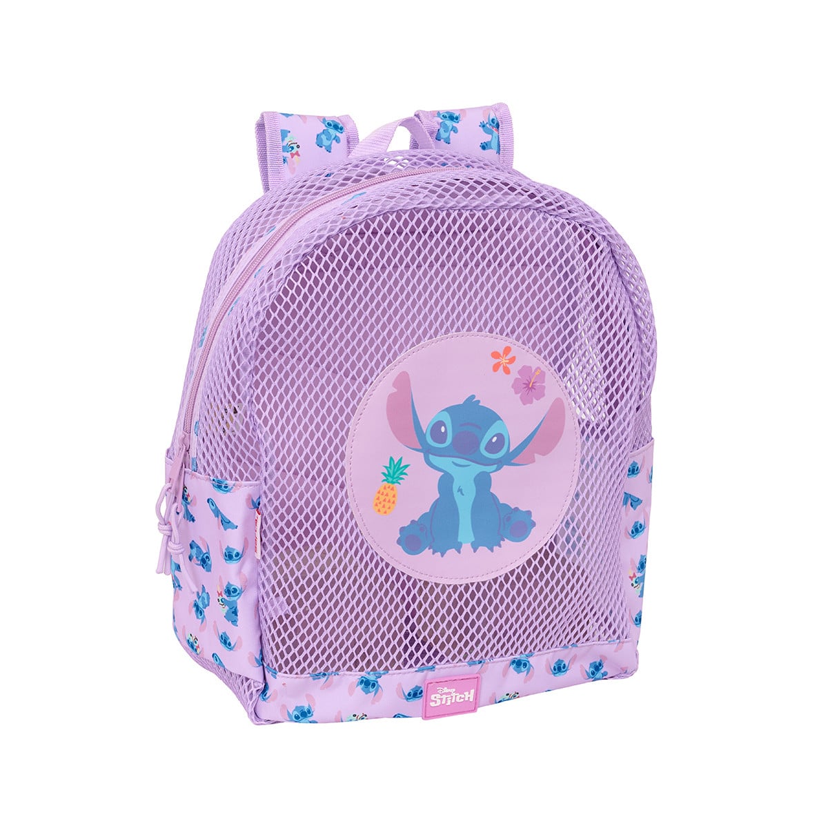 - Diseño: Mochila anti-arena con estética de Stitch en tonos violetas, con ilustraciones alegres y detalles infantiles que la hacen muy atractiva para los más pequeños.