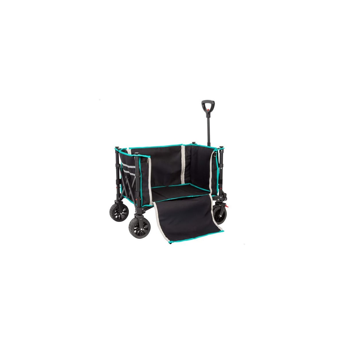 Sus ruedas todoterreno de 14 cm están pensadas para desplazarse sin dificultad sobre arena, césped o superficies irregulares, garantizando un movimiento fluido incluso cuando va cargado. Además, incorpora bandas reflectantes que mejoran la visibilidad en condiciones de poca luz y un bolsillo interior perfecto para guardar objetos pequeños.