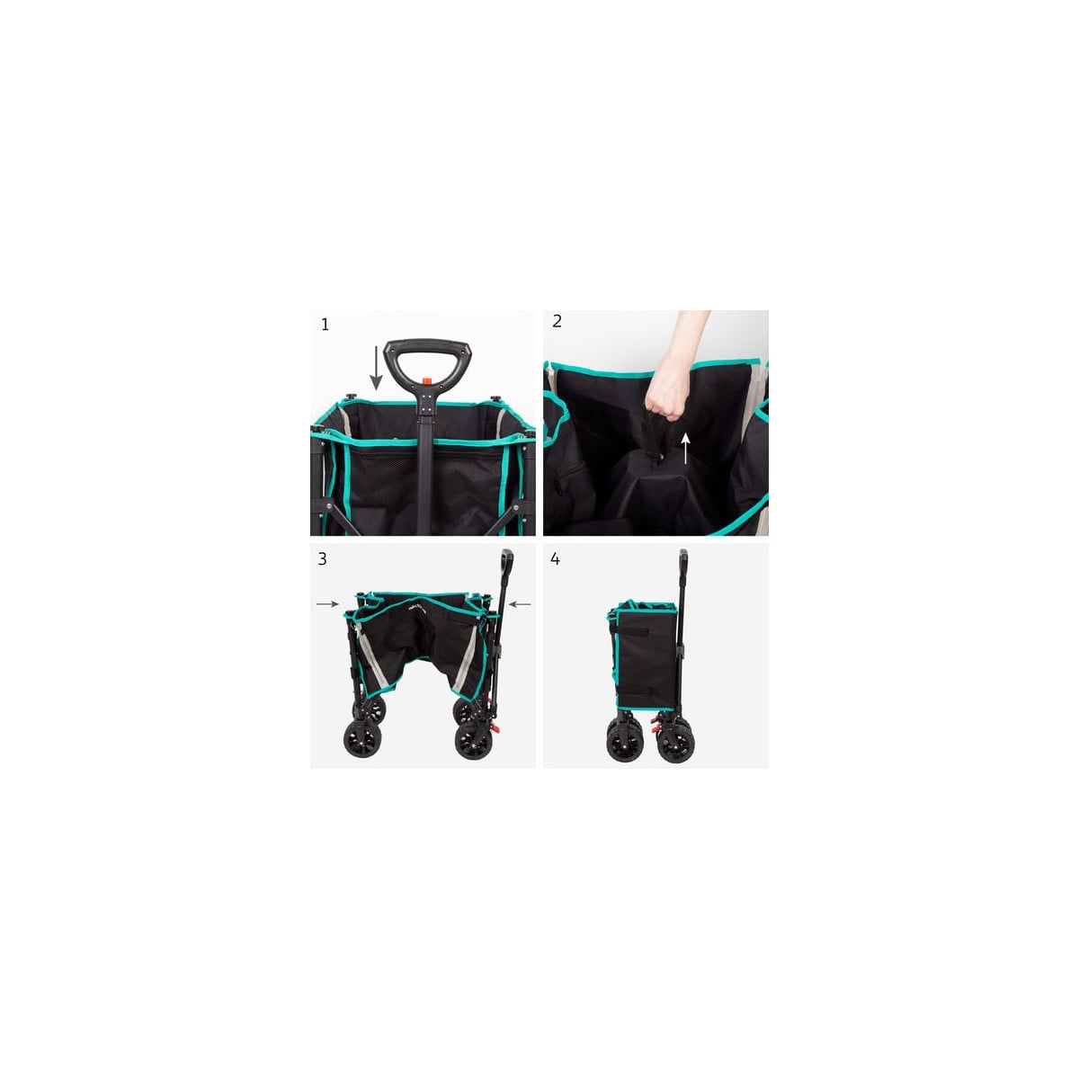 Este carro destaca por su sistema de plegado rápido, que permite reducirlo a un formato compacto para guardarlo fácilmente en casa o en el maletero. Su asa extensible facilita el manejo y el transporte, adaptándose a la altura para mayor comodidad.