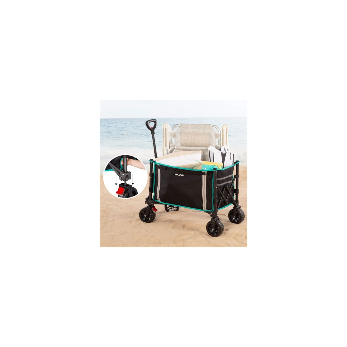Carro de playa plegable Aktive con ruedas todoterreno, capacidad de 60 kg y diseño compacto, ideal para transportar todo cómodamente.