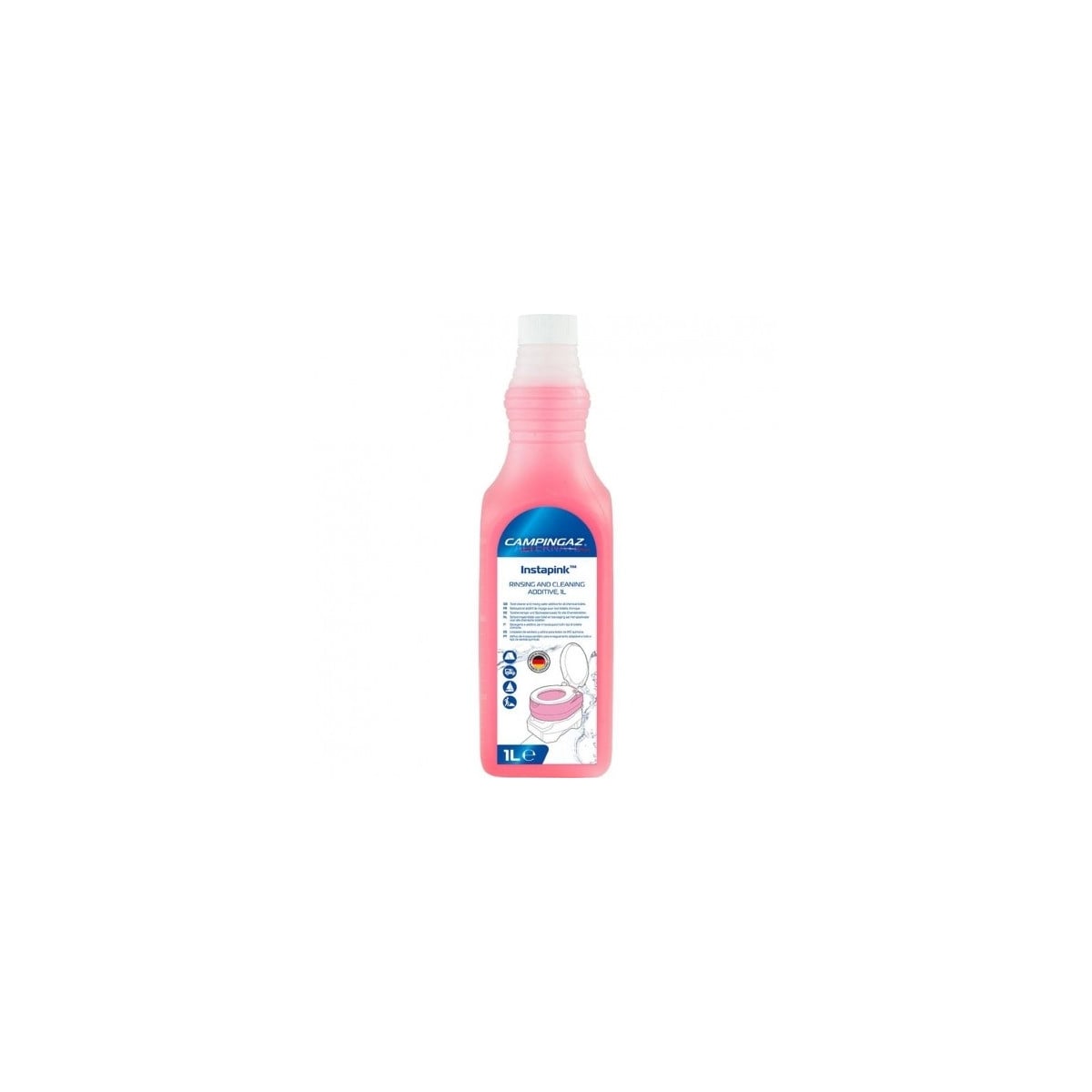 Presentado en un formato de 1 litro, el líquido limpiador Instapink Rinse es apto tanto para tanque de agua o taza de WC.
