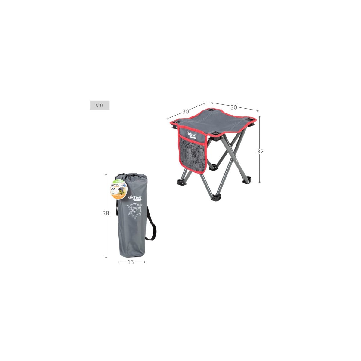 El Taburete Plegable 30x30x32 cm con Bolsillo Aktive Camping es ese básico que siempre viene bien tener a mano en cualquier escapada. Ligero, práctico y fácil de transportar, te ofrece un asiento cómodo en cualquier lugar: camping, playa, pesca, festivales o incluso en el jardín.