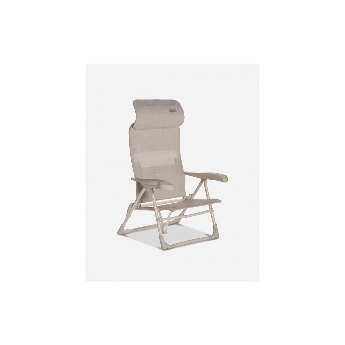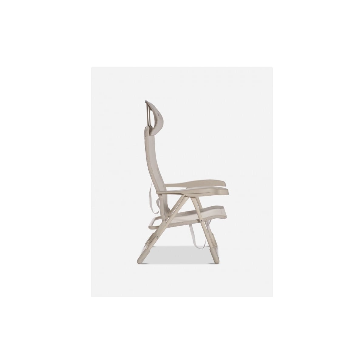 Silla de playa con reposacabezas ergonómico, estructura de aluminio y multifibra. Color beige.