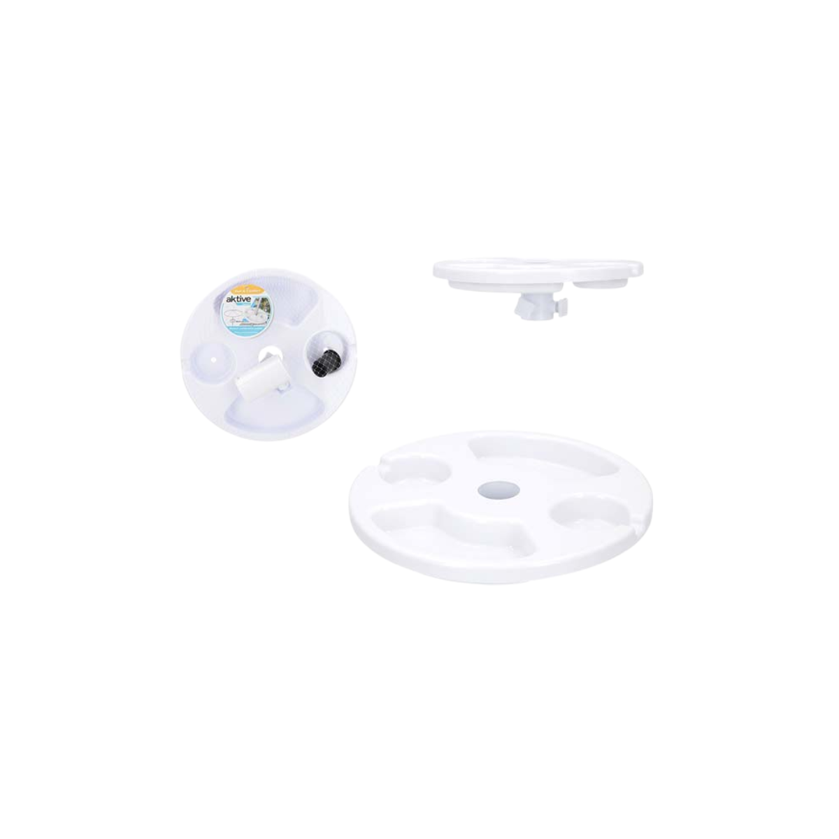 La mesa redonda para sombrilla de Aktive Beach es el complemento perfecto para disfrutar de la playa o la piscina con mayor comodidad. Diseñada para colocarse directamente en el mástil de la sombrilla, permite tener a mano bebidas, snacks o pequeños objetos sin necesidad de levantarse.