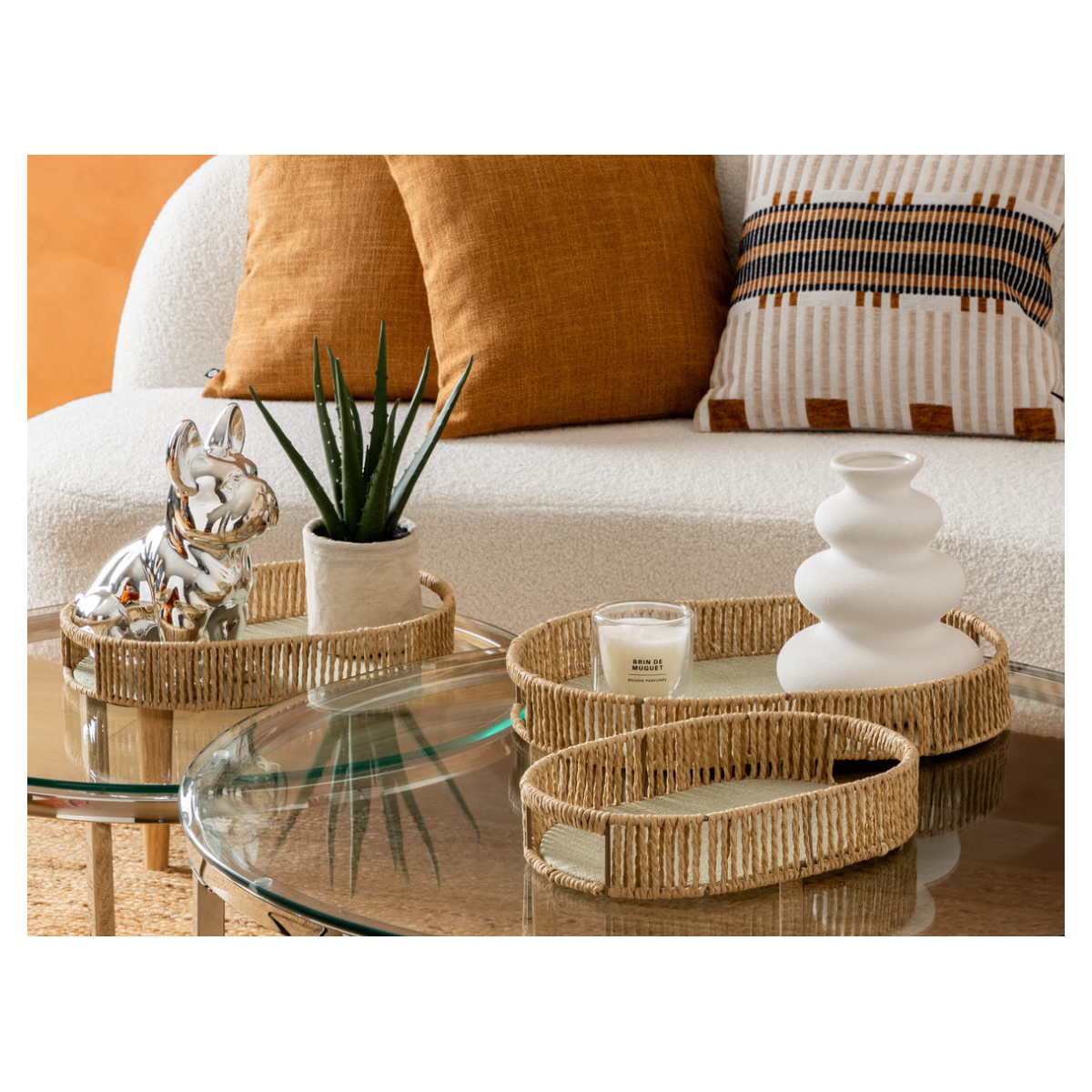 El diseño combina funcionalidad y estética, convirtiendo a esta Bandeja Ovalada Ali en un complemento útil tanto para servir como para utilizarla como elemento decorativo sobre mesas o muebles. Su acabado en tono beige aporta una apariencia limpia y versátil que se adapta a distintos estilos de cocina o comedor.