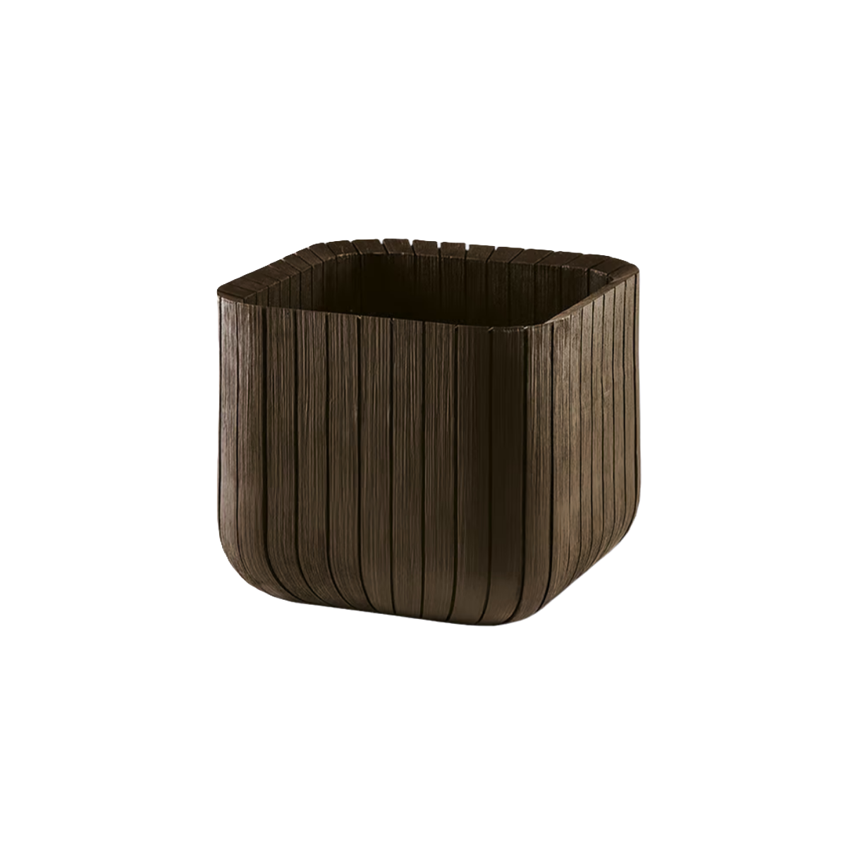 Dale vida a tu jardín con este macetero marrón de 50L, ideal para plantas grandes y decorativas. Diseño efecto madera y resistencia total para todo el año.