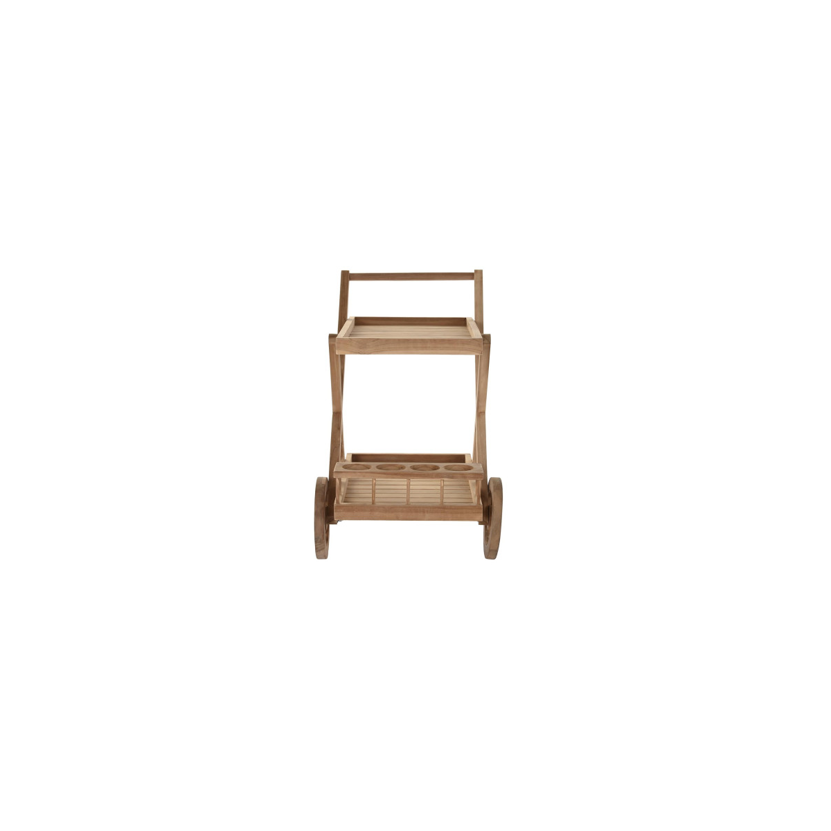 Camarera de teca con ruedas de 70x55x84 cm, ideal para exterior. Elegante, práctica y resistente, perfecta para servir y decorar tus reuniones al aire libre.