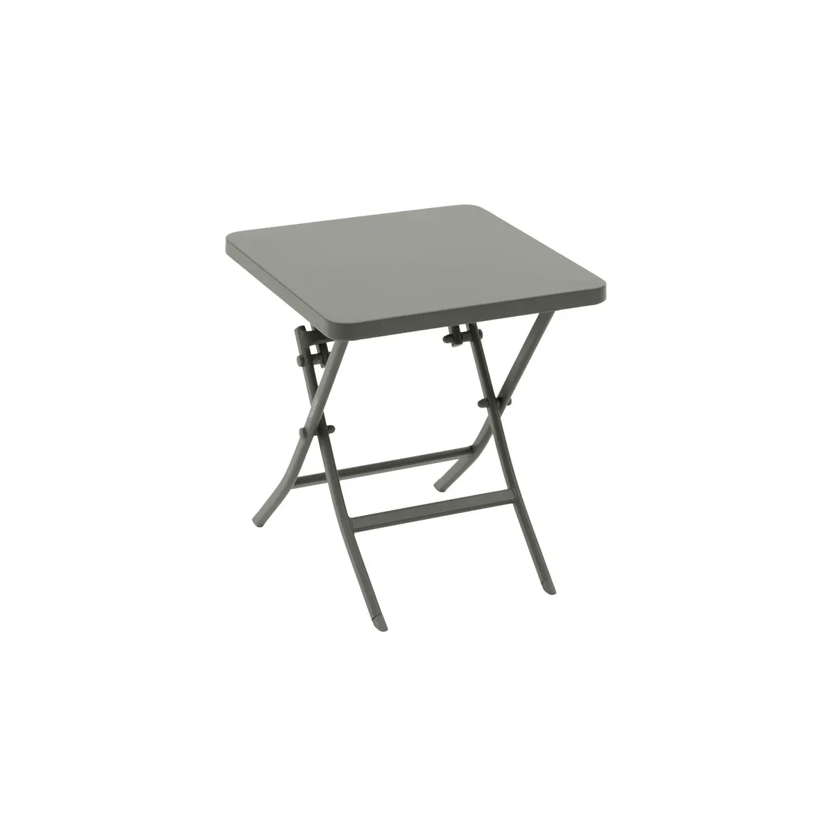 Mesa auxiliar de jardín cuadrada Greensboro verde laurel 40x40 cm. Plegable, compacta y fabricada en acero con tratamiento antioxidante. Ideal para terraza, balcón o jardín.