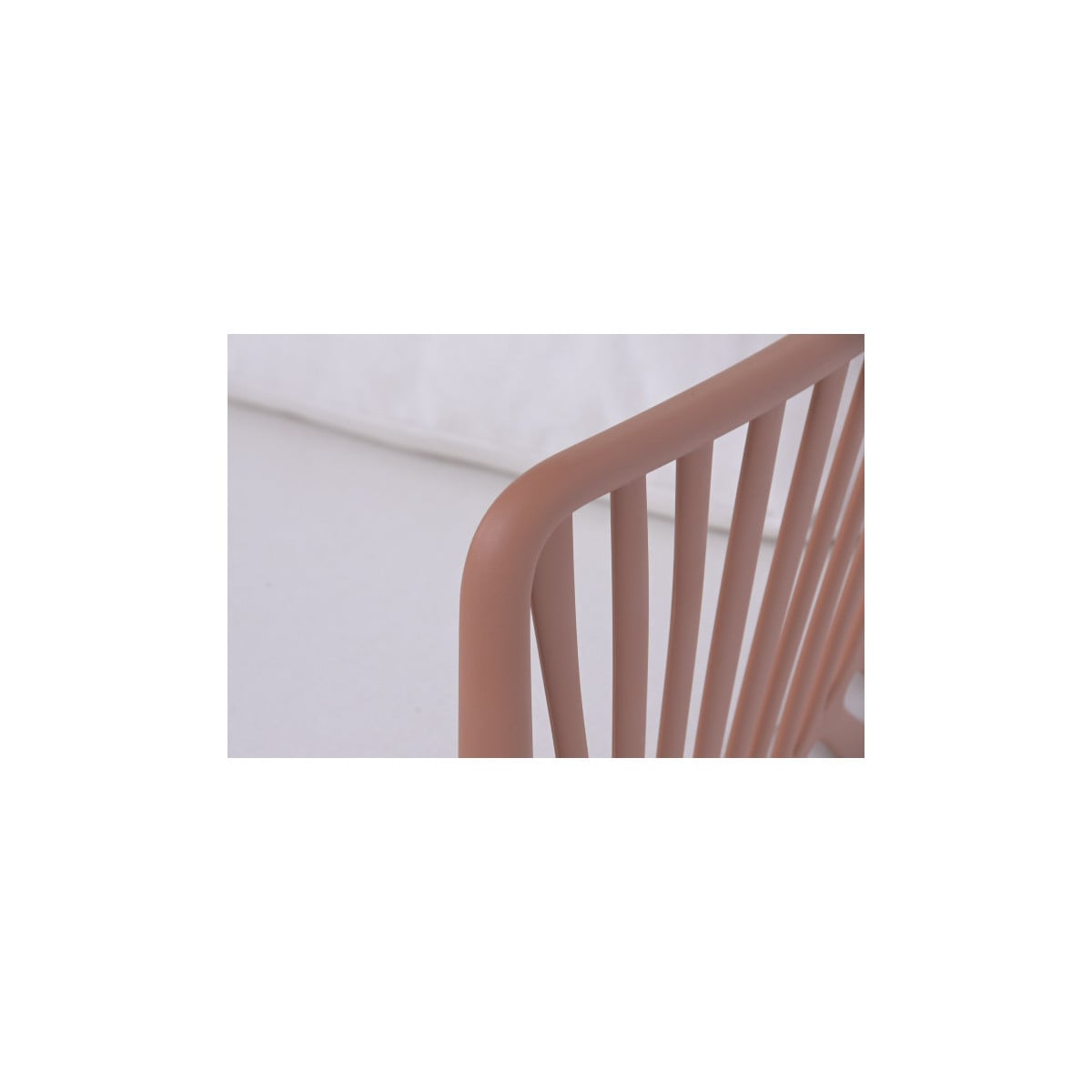 La estructura está fabricada en polipropileno resistente, un material pensado para uso exterior por su durabilidad y fácil mantenimiento. Los cojines incluidos, confeccionados en poliéster, aportan comodidad y cuentan con acabado repelente al agua, ideal para su uso en exteriores.
