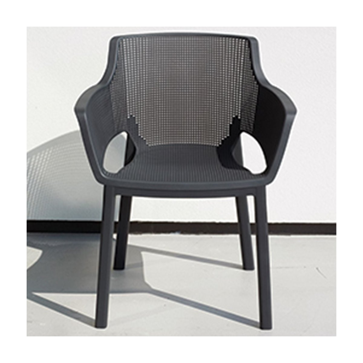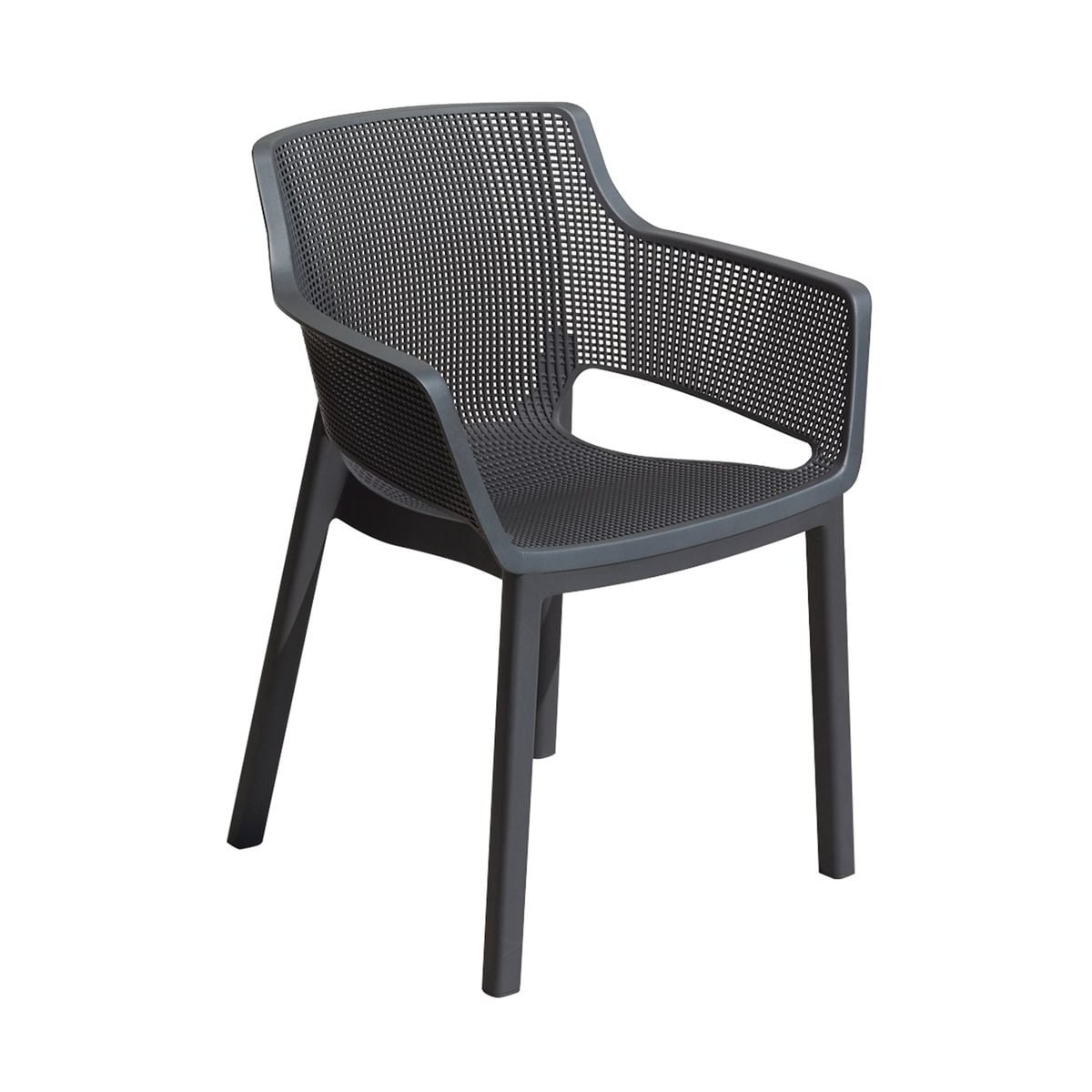 Descubre la silla Elisa grafito: ligera, resistente, apilable y 100% reciclable, perfecta para tu jardín o terraza con estilo y sin complicaciones.