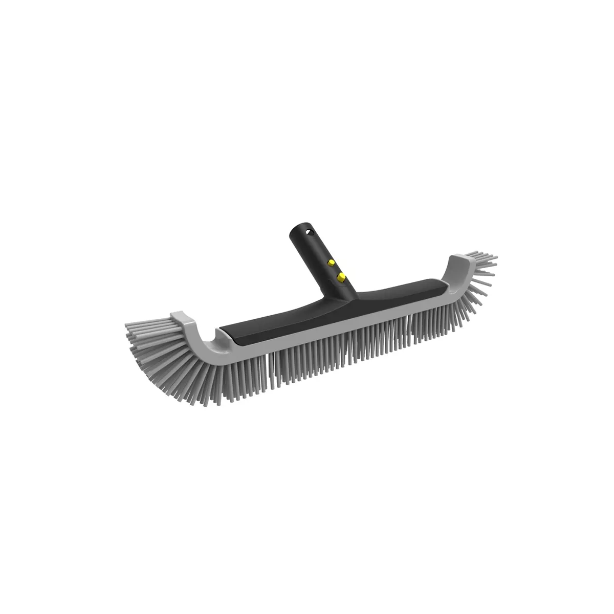 Gracias a sus extremos curvos, este cepillo facilita la limpieza en zonas más difíciles, como ángulos y uniones entre pared y fondo. Sus cerdas resistentes ofrecen una fricción eficaz sin dañar el revestimiento. Es compatible con todo tipo de revestimientos y cuenta con fijación tipo clip, lo que permite utilizarlo con mangos telescópicos estándar (no incluido).