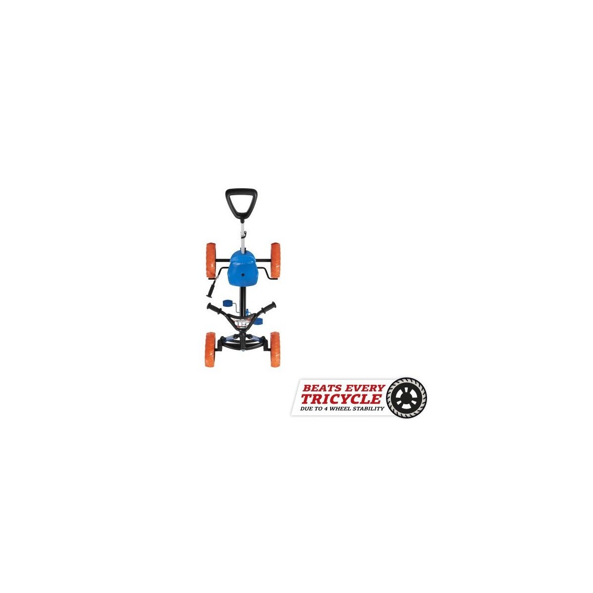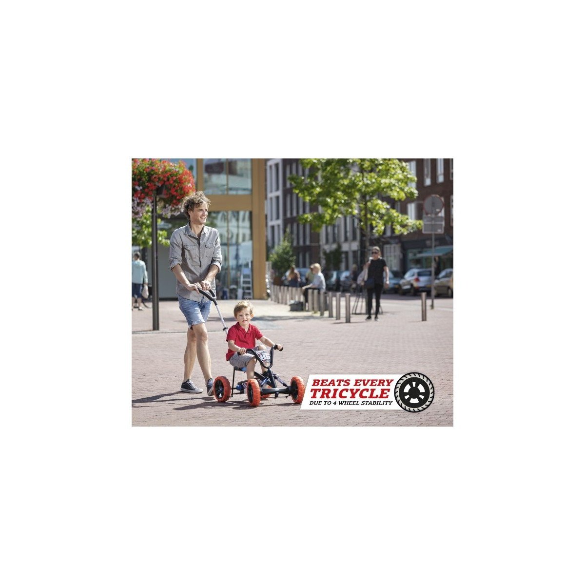 El coche de pedales Buzzy Nitro es un cuadriciclo unico que ofrece dos experiencias en una. Por un lado, se presenta como un coche de pedales al estilo del BERG Nitro, conocido por su estabilidad y facilidad de conduccion, superando incluso a un triciclo tradicional. Sus ruedas de EVA estan diseñadas para rodar sin preocupaciones tanto en interiores como en exteriores, incluso en el jardin. Pero cuando los pequeños conductores se cansan y es hora de regresar a casa, este ingenioso vehiculo se convierte en un cuadriciclo 2 en 1.