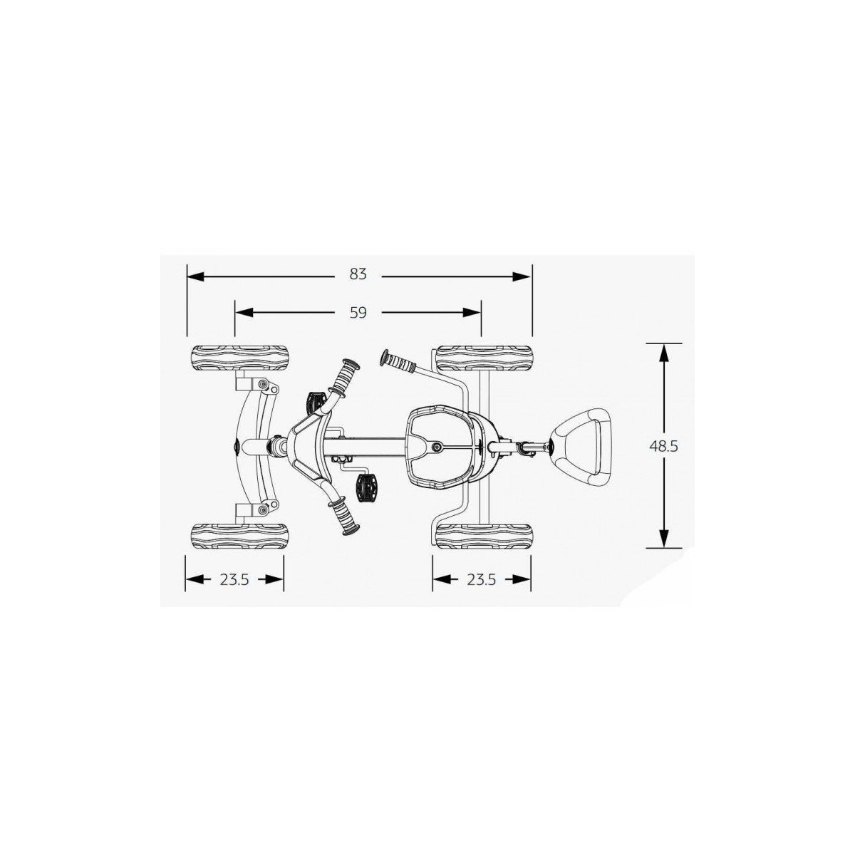 - Dimensiones del kart: 83 cm de largo x 49 cm de ancho x 50 cm de alto.
