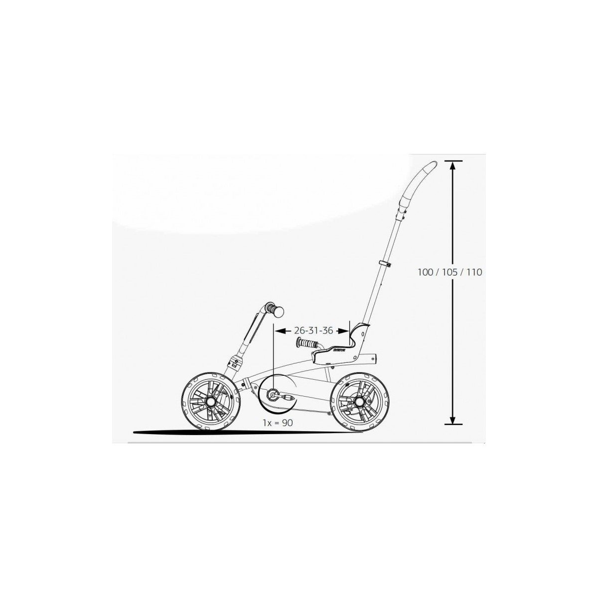 - Versatilidad sin igual: Gracias a la barra de empuje ajustable y ligera de aluminio, asi como al cambio rapido del piñon, transformar el cuadriciclo para pasear es pan comido. Esta operacion se realiza en solo 5 segundos, sin necesidad de herramientas. Ademas, cuenta con un freno de mano para mayor seguridad.
