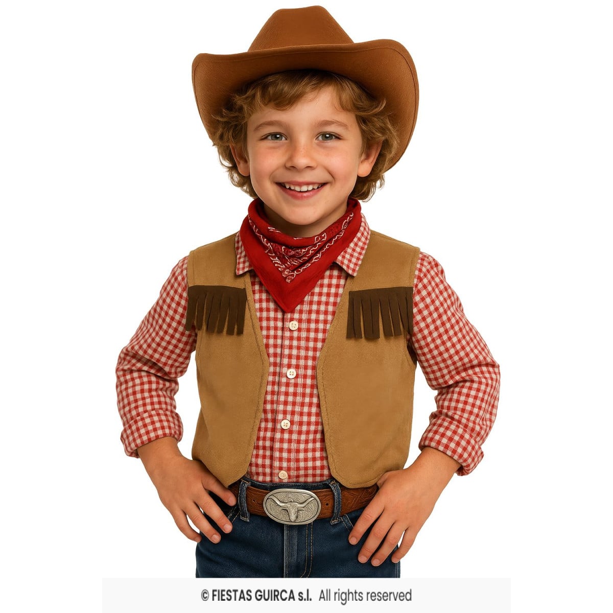 Es ligero, cómodo y fácil de poner, ideal para que niños y niñas lo lleven durante fiestas, carnaval, funciones escolares o juegos de disfraces. Un básico muy versátil que se puede combinar con camisas, pañuelos o sombreros para crear distintos personajes del Lejano Oeste.