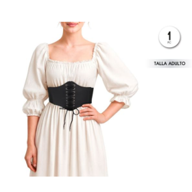 Cuenta con cierre frontal mediante cordones, lo que permite ajustarlo fácilmente al cuerpo y adaptarlo a diferentes siluetas. Su color marrón combina a la perfección con vestidos claros u oscuros, aportando contraste y un acabado más realista al disfraz. Es un accesorio cómodo de llevar y perfecto para carnavales, fiestas temáticas, eventos históricos o representaciones teatrales.