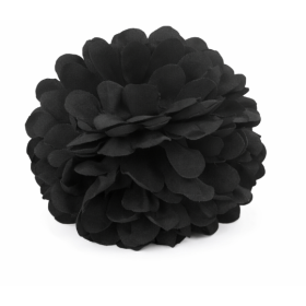 Con un diámetro aproximado de 13 cm, destaca por su volumen y por el acabado cuidado de sus pétalos de tela, que aportan una apariencia suave y armoniosa. Incorpora una práctica pinza trasera que permite colocarla fácilmente en el cabello, moños, recogidos, vestidos, trajes de flamenca o como adorno en diferentes complementos.