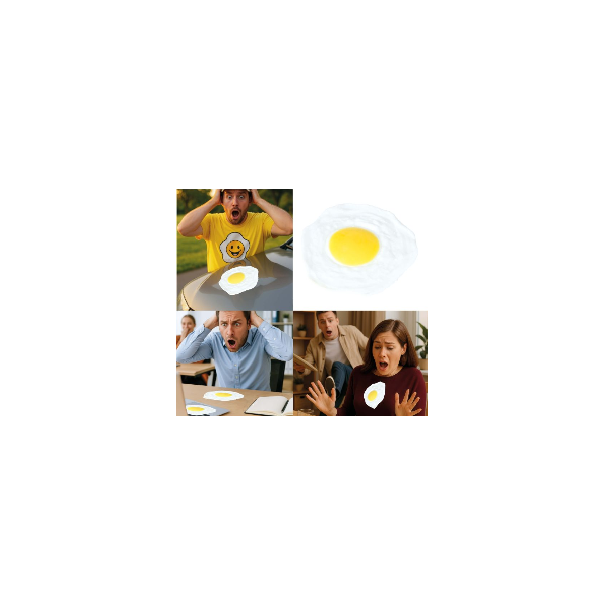 Huevo frito de broma, fabricado con látex realista, ideal para gastar bromas y provocar risas en fiestas y reuniones.