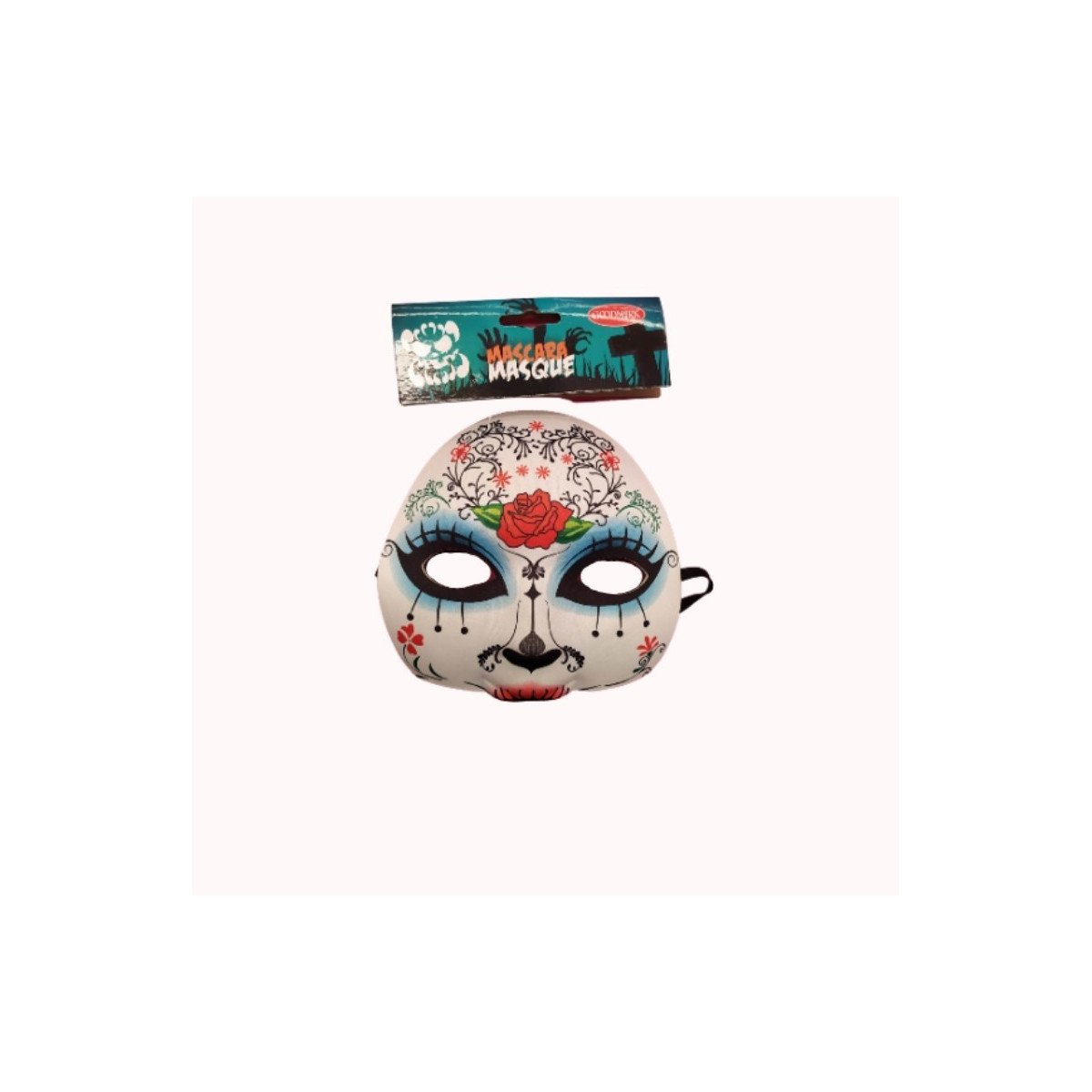 La Media Máscara de Halloween de Catrina es talla única, para adultos, y dispone de una cinta de goma elástica en la parte posterior.