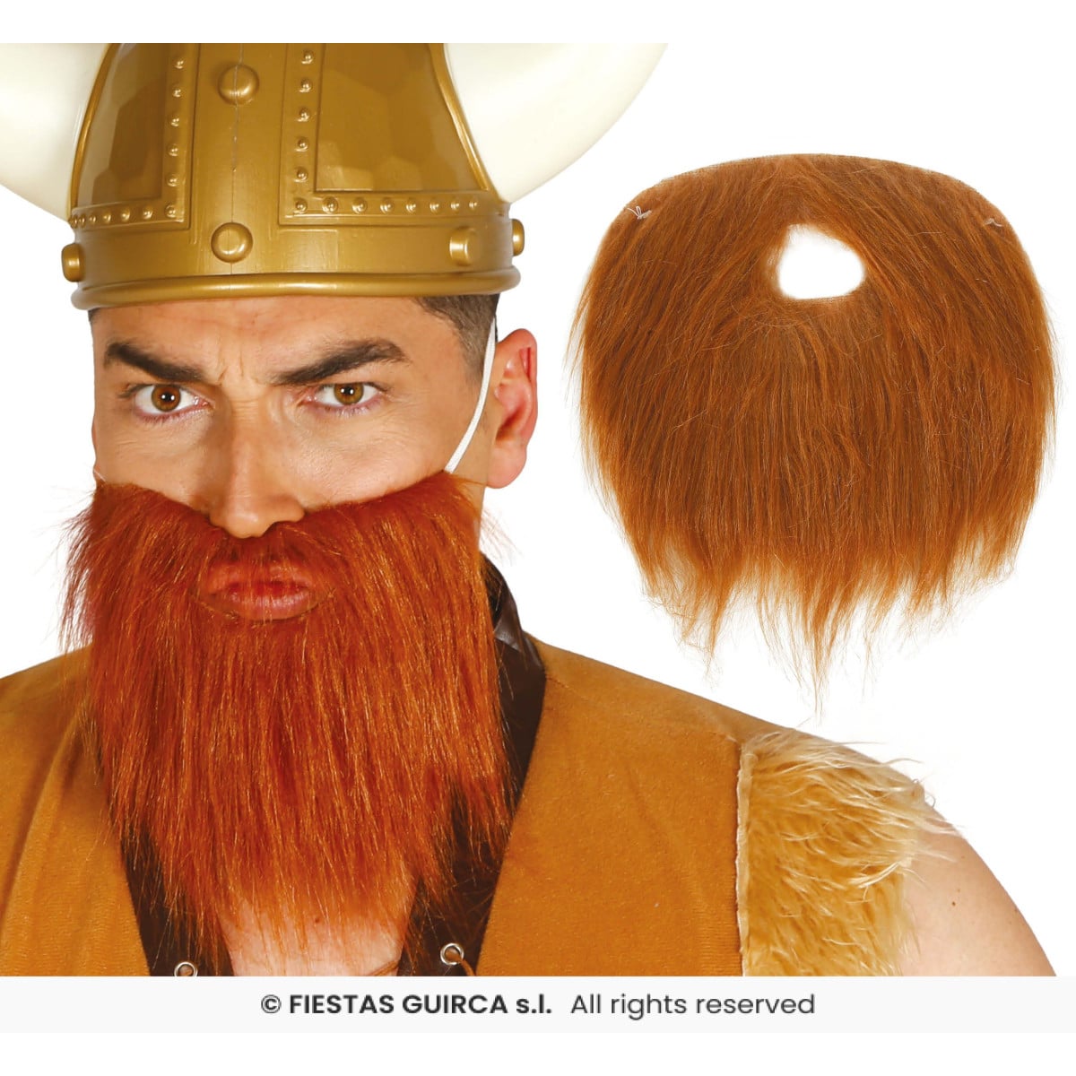 Completa tu disfraz de Vikingo con esta Barba Castaña, un accesorio realista y cómodo que aporta autenticidad a cualquier personaje.