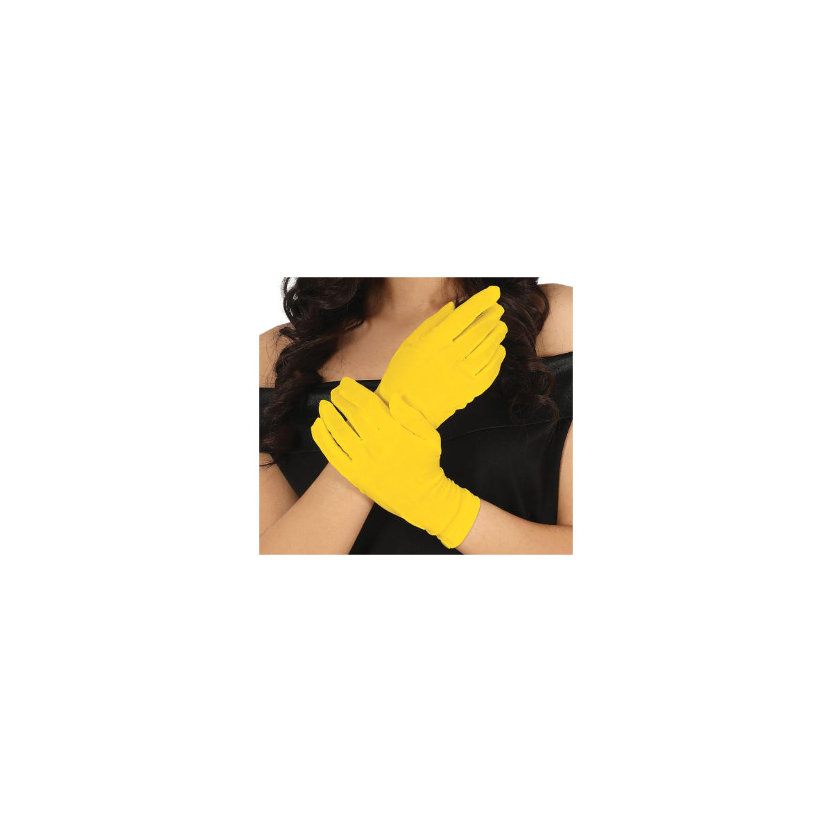 Guantes cortos amarillos, de 20 cm, para disfraz adulto, ideales para carnaval, fiestas temáticas y eventos. Perfectos para completar looks elegantes o divertidos.