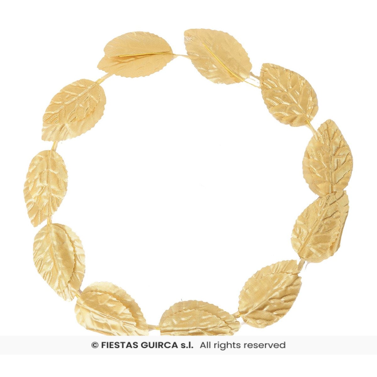 Corona dorada estilo laurel, ideal para disfraces de César, emperadores o dioses romanos. Flexible, cómoda y ligera, el complemento perfecto para destacar con aire imperial.