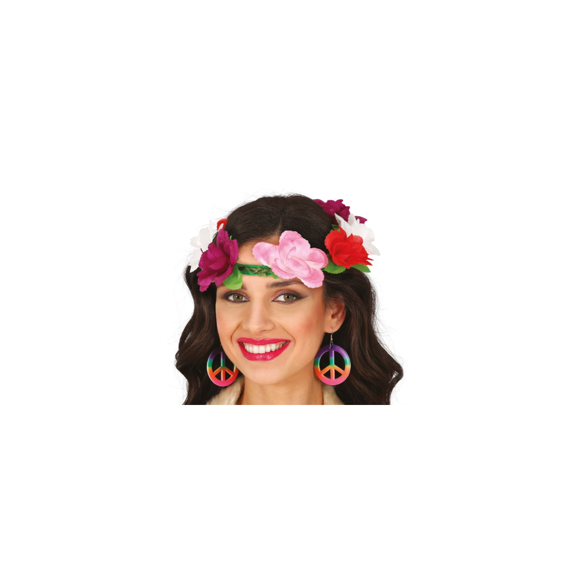 Corona de rosas de 20 cm, para disfraz adulto, ideal para fiestas hippies, festivales, carnaval y eventos temáticos con un toque floral y colorido.