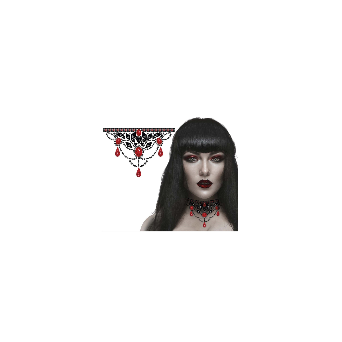 Destaca en cualquier fiesta temática con las Joyas Adhesivas para el Cuello de Gótica. Podrás usar la plantilla tal cual figura en el blíster o recortarla a tu gusto para hacerla todavía más personalizada.