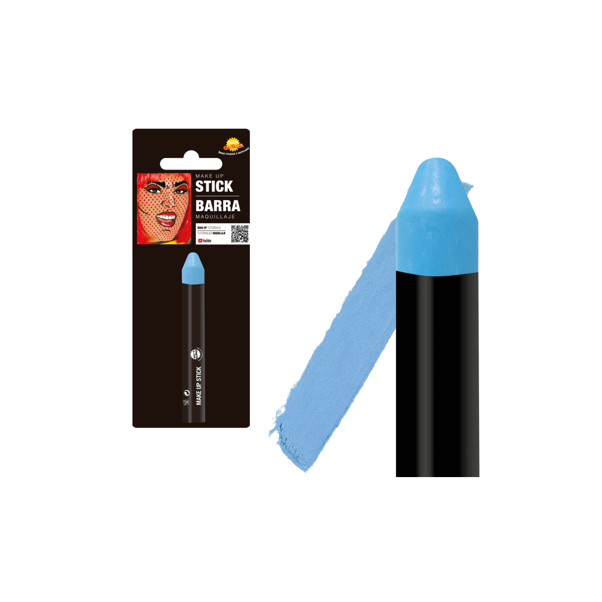 Descubre la Barra de Maquillaje color Azul Celeste y crea un look vibrante, fácil de aplicar y perfecto para tus disfraces, fiestas y celebraciones.