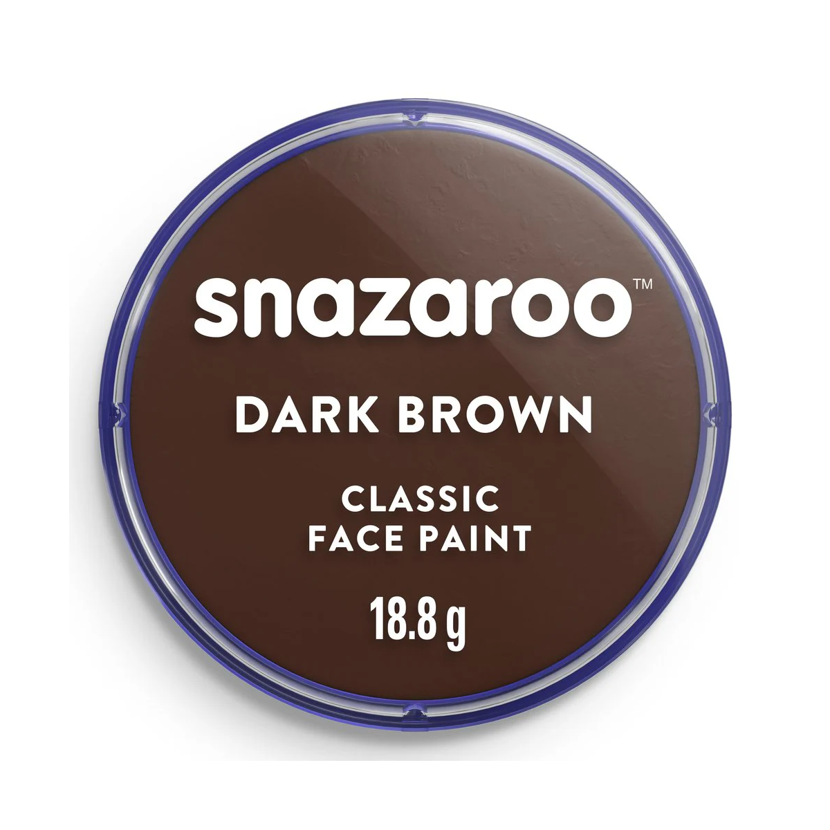 Pintura facial y corporal de Snazaroo en tono marrón oscuro. Formulación a base de agua, fácil de aplicar y retirar. Ideal para fiestas, disfraces o momentos creativos.