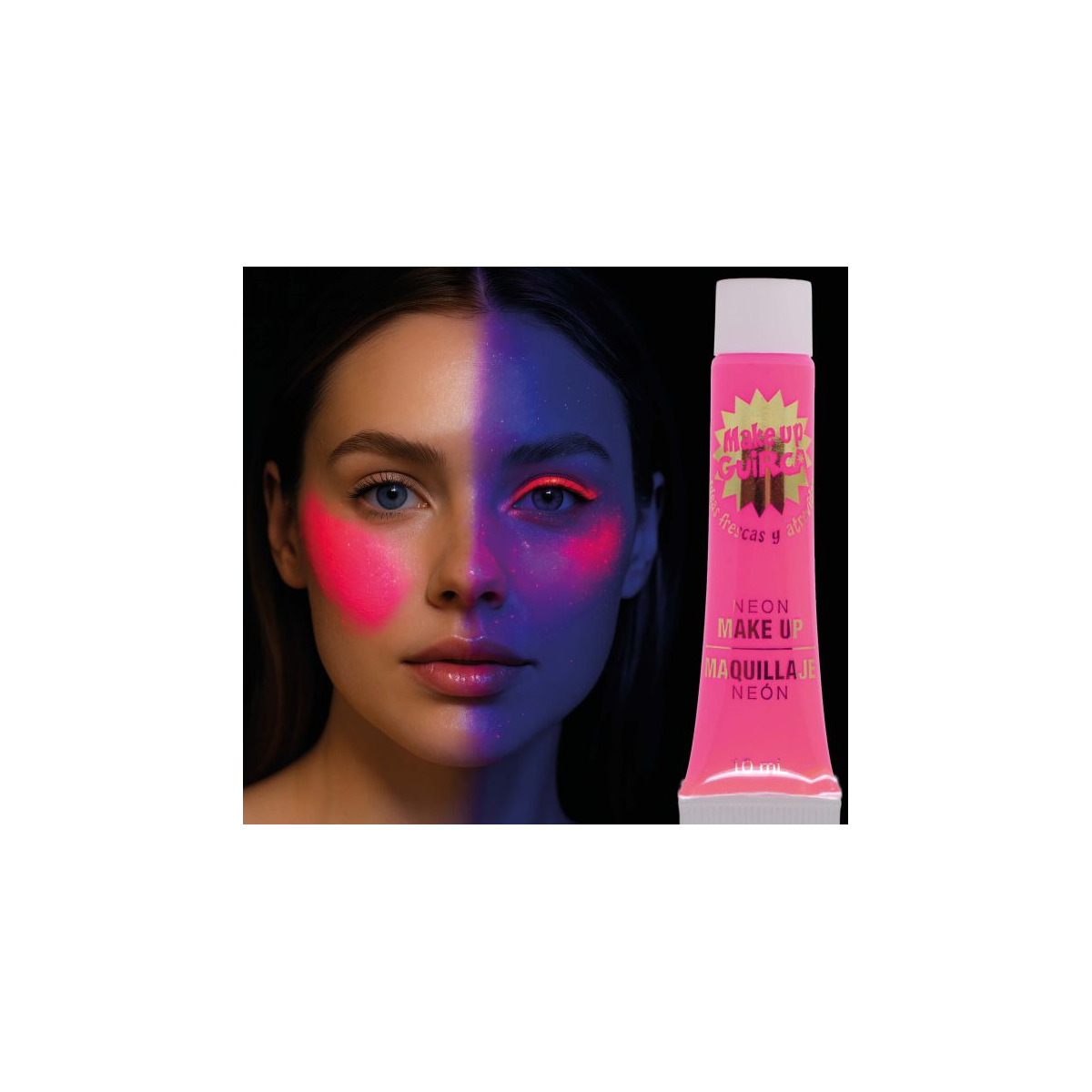 Descubre el Tubo Maquillaje Crema Rosa Neón 10 ml y consigue un look radiante que brilla bajo la luz UV para tus fiestas más divertidas y únicas.