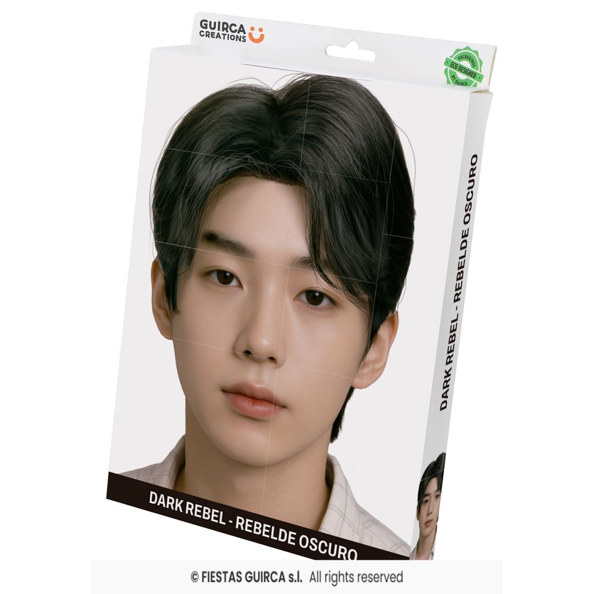 De corte natural, acabado brillante y peinado perfectamente definido, esta peluca negra es ideal para completar disfraces de ídolos del pop coreano, personajes de series o estilos urbanos. Ya sea para Carnaval, eventos escolares o simplemente para hacer un homenaje a tu integrante favorito, esta peluca te transformará por completo.