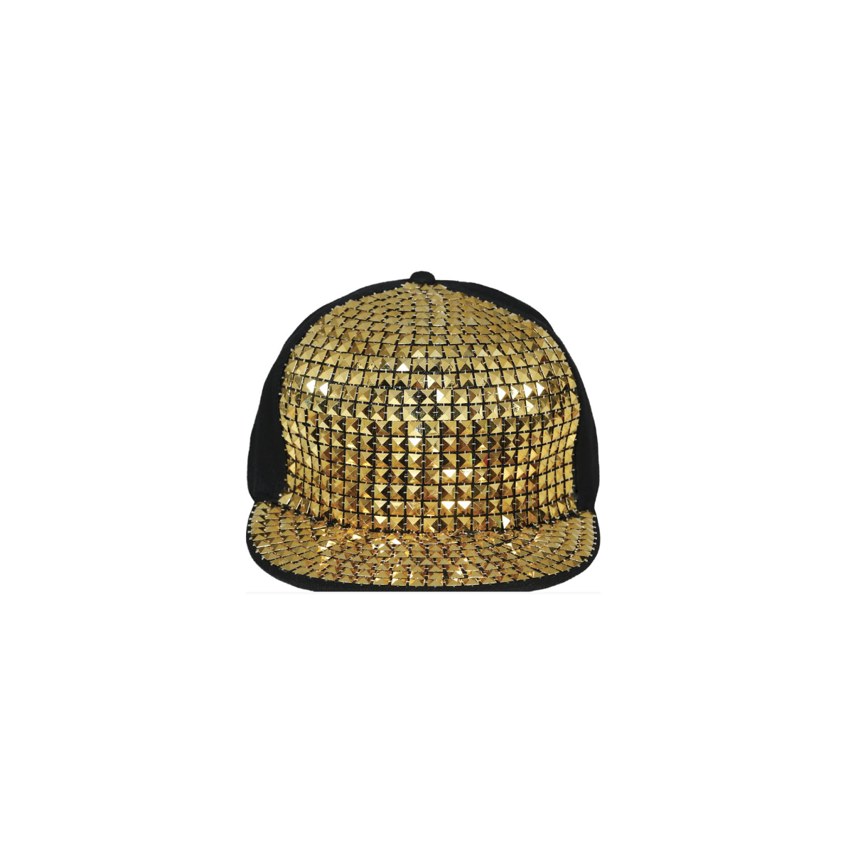 Gorra rapero dorada con remaches para disfraces, ideal para looks urbanos, carnavales, fiestas temáticas y eventos donde destacar con estilo.