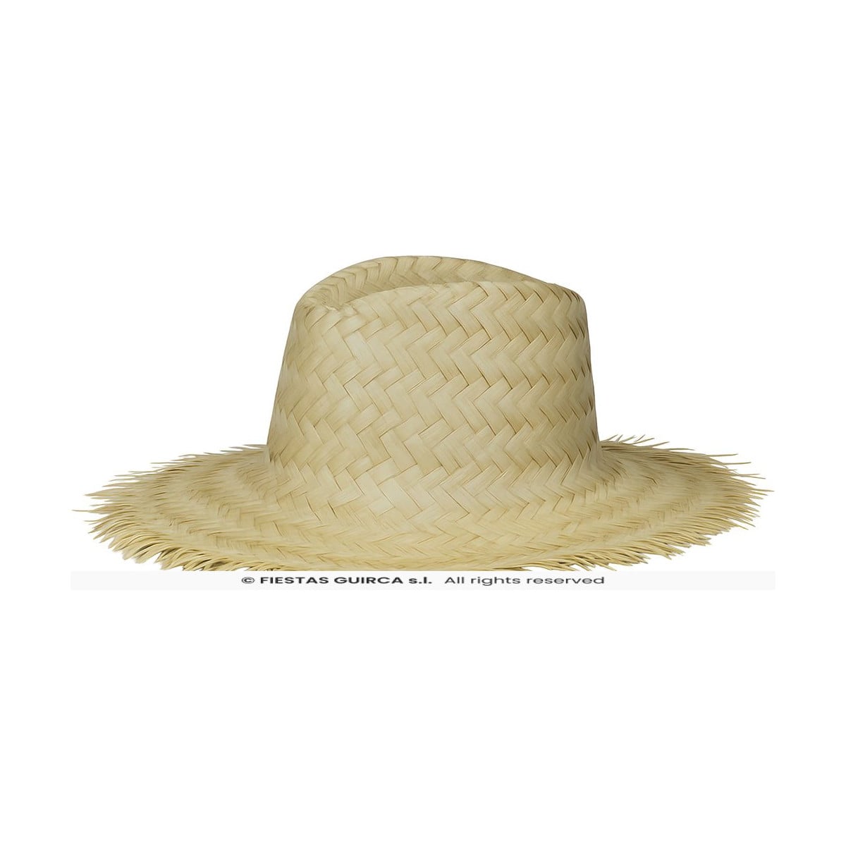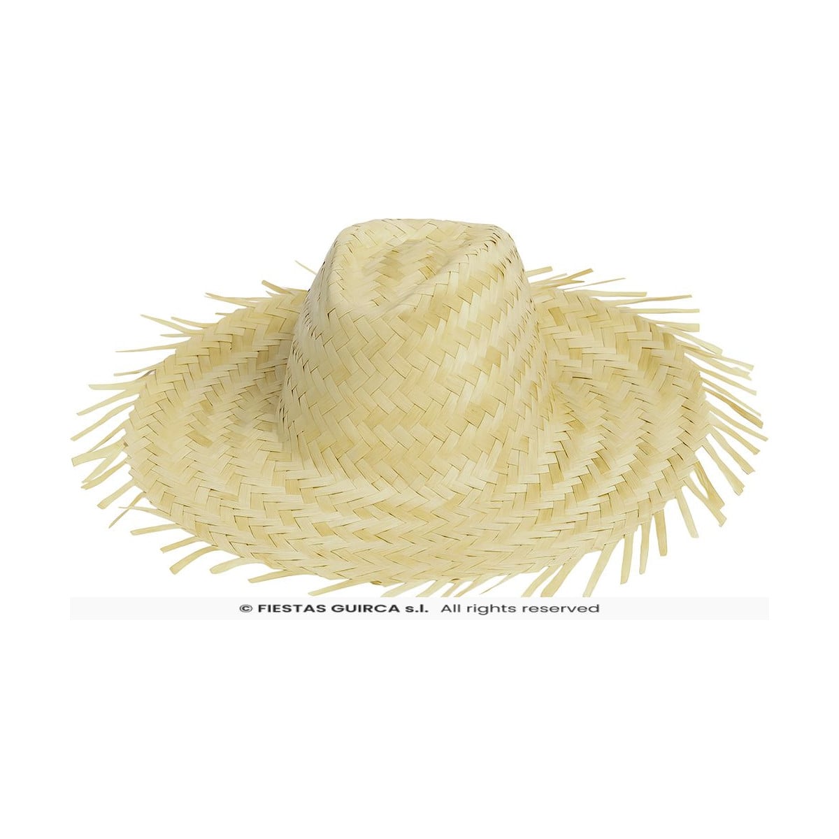 Está fabricado en paja trenzada con acabado rústico y ala con fibras desflecadas que le dan ese aspecto tradicional tan característico. Su diseño ligero permite llevarlo durante horas con comodidad, convirtiéndolo en un accesorio práctico tanto para eventos como para representaciones escolares o fiestas del cole.