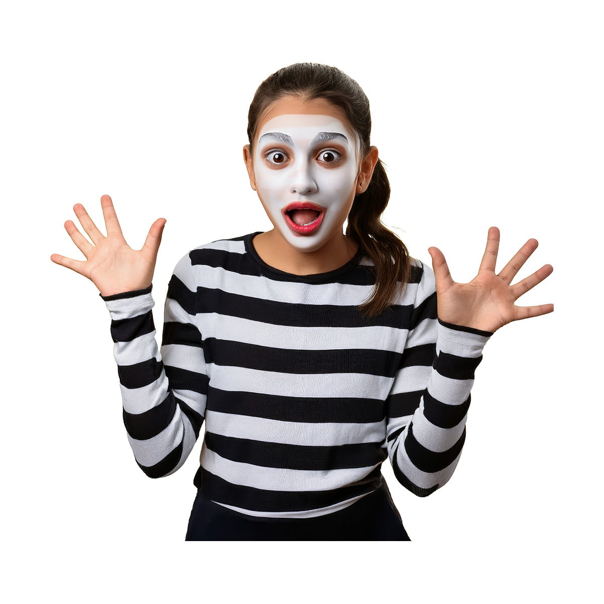 Esta camiseta de rayas para niños y niñas en talla 7-9 años es una prenda imprescindible para crear disfraces clásicos y reconocibles de forma sencilla. Su diseño de rayas horizontales en blanco y negro aporta ese estilo característico que encaja a la perfección en disfraces de mimo, ladrón, preso o personajes de cuentos, teatro y representaciones escolares.