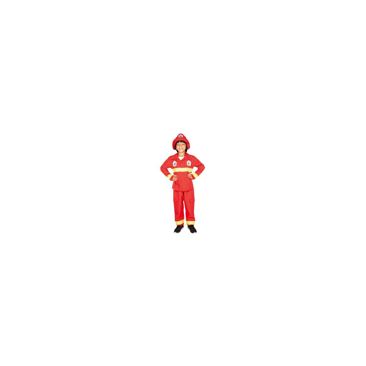 Disfraz de bombero para niñ@s con chaqueta, pantalón y casco a juego. Cómodo y vistoso, ideal para Carnaval, fiestas escolares, cumpleaños y juegos de disfraces llenos de acción y aventuras.