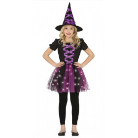 Incluye: 1 disfraz infantil de bruja con vestido de luces LED y gorro a conjunto