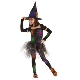 ¡L@s peques irán divin@s y muy cómod@s a la fiesta de halloween con el colorido Disfraz de Bruja Telaraña Infantil!