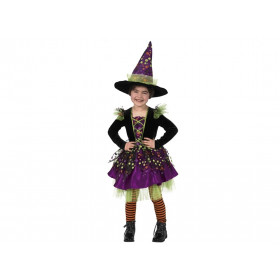 Incluye: 1 disfraz infantil de brujita puntitos con vestido, sombrero y leggins