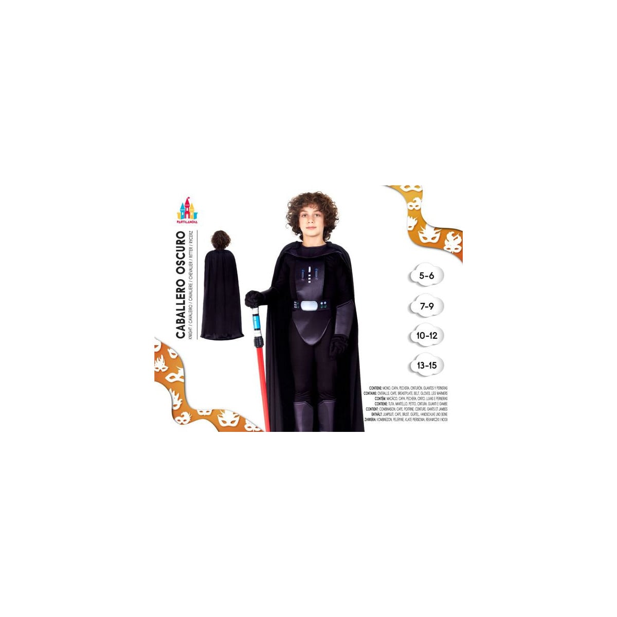 Si tu peque es un auténtico fan de la saga galáctica más famosa de todos los tiempos, este disfraz de Caballero Oscuro de Star Wars es perfecto para transportarlo al Lado Oscuro de la Fuerza. Diseñado para niños y niñas de 13 a 15 años, este traje ofrece una recreación fiel del atuendo de uno de los villanos más icónicos de la historia del cine. Con un diseño imponente y detalles que reflejan la esencia del personaje, este disfraz será el centro de todas las miradas en fiestas de disfraces, Halloween o eventos temáticos.