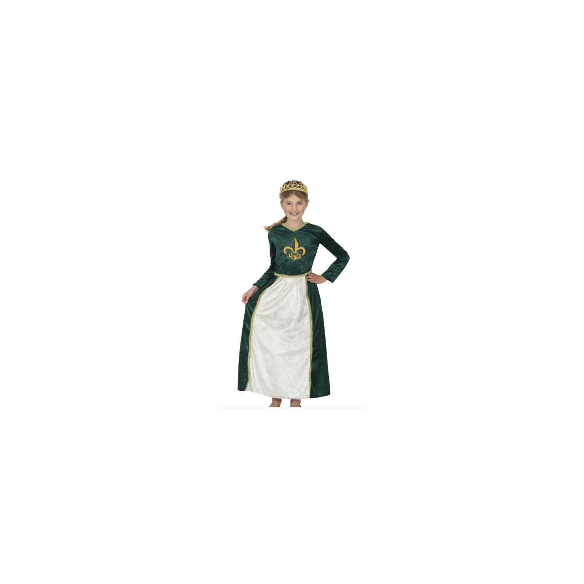 Disfraz infantil de dama medieval con vestido cómodo y fácil de poner, ideal para Carnaval, Halloween y fiestas infantiles de cuentos y fantasía.