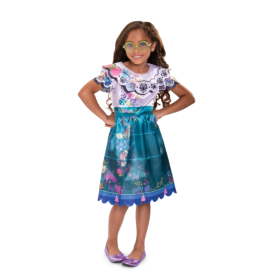 Descubre el Disfraz Disney Encanto Mirabel Talla 3-4 Años; vestido azul vibrante, estampado floral y capa brillante para brillar sin límites.