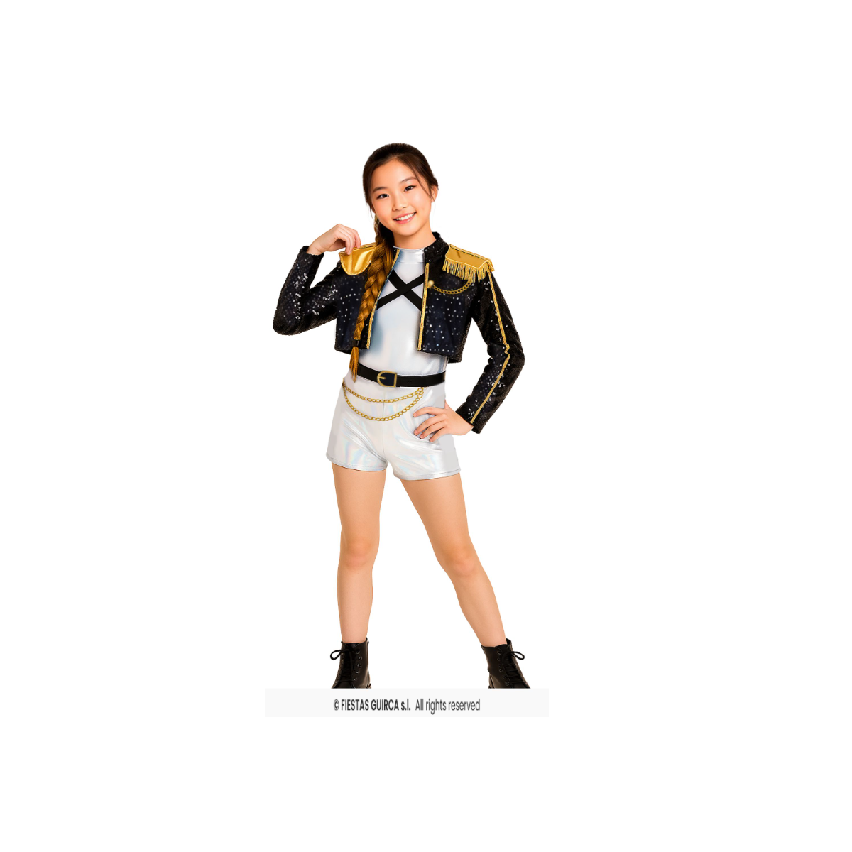 En esta versión talla 5-6 años, el disfraz es de la marca Guirca e incluye chaqueta, cinturón, pantalón corto y camiseta, formando un conjunto completo pensado para esta etapa. La talla está adaptada para que el peque pueda moverse con libertad, jugar y participar en celebraciones sin incomodidades.