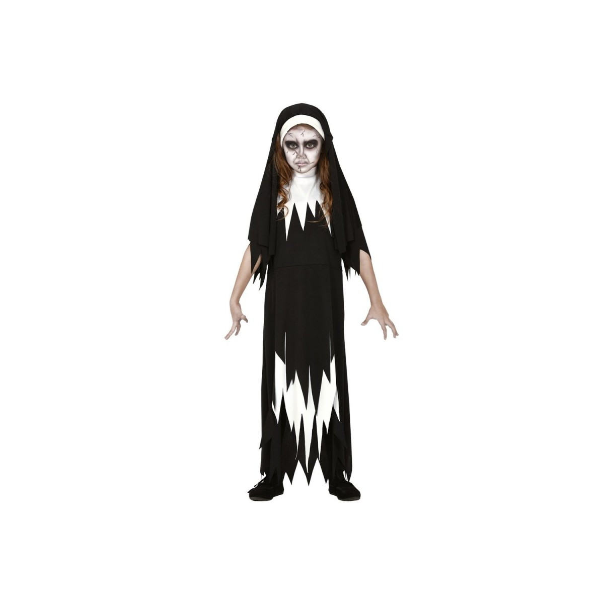 Incluye: 1 disfraz de monja infantil con vestido y cofia