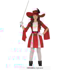 Disfraz de Mosquetera Roja Infantil con vestido, cinturón y sombrero. Diseño elegante y aventurero. ¡Ideal para carnaval y fiestas temáticas!