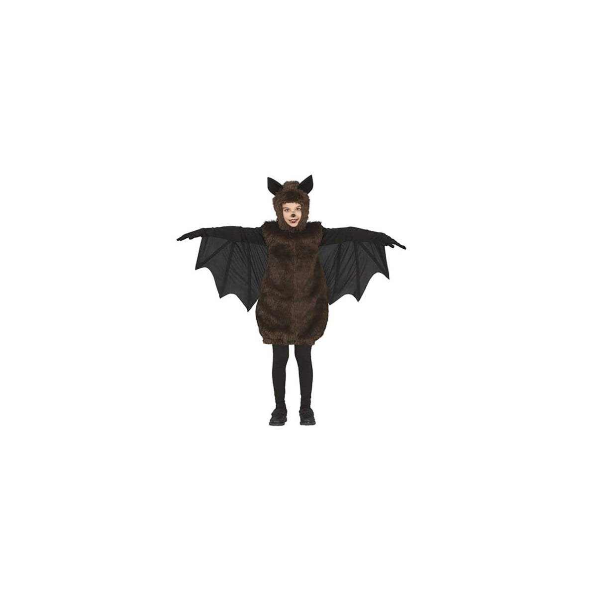 Incluye: 1 disfraz infantil de murciélago con túnica peluda, capucha con orejas y alas cosidas en las mangas