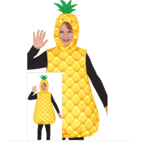 Disfraz infantil de piña con traje y capucha, cómodo y fácil de poner, ideal para Carnaval, Halloween y fiestas infantiles llenas de color y diversión.