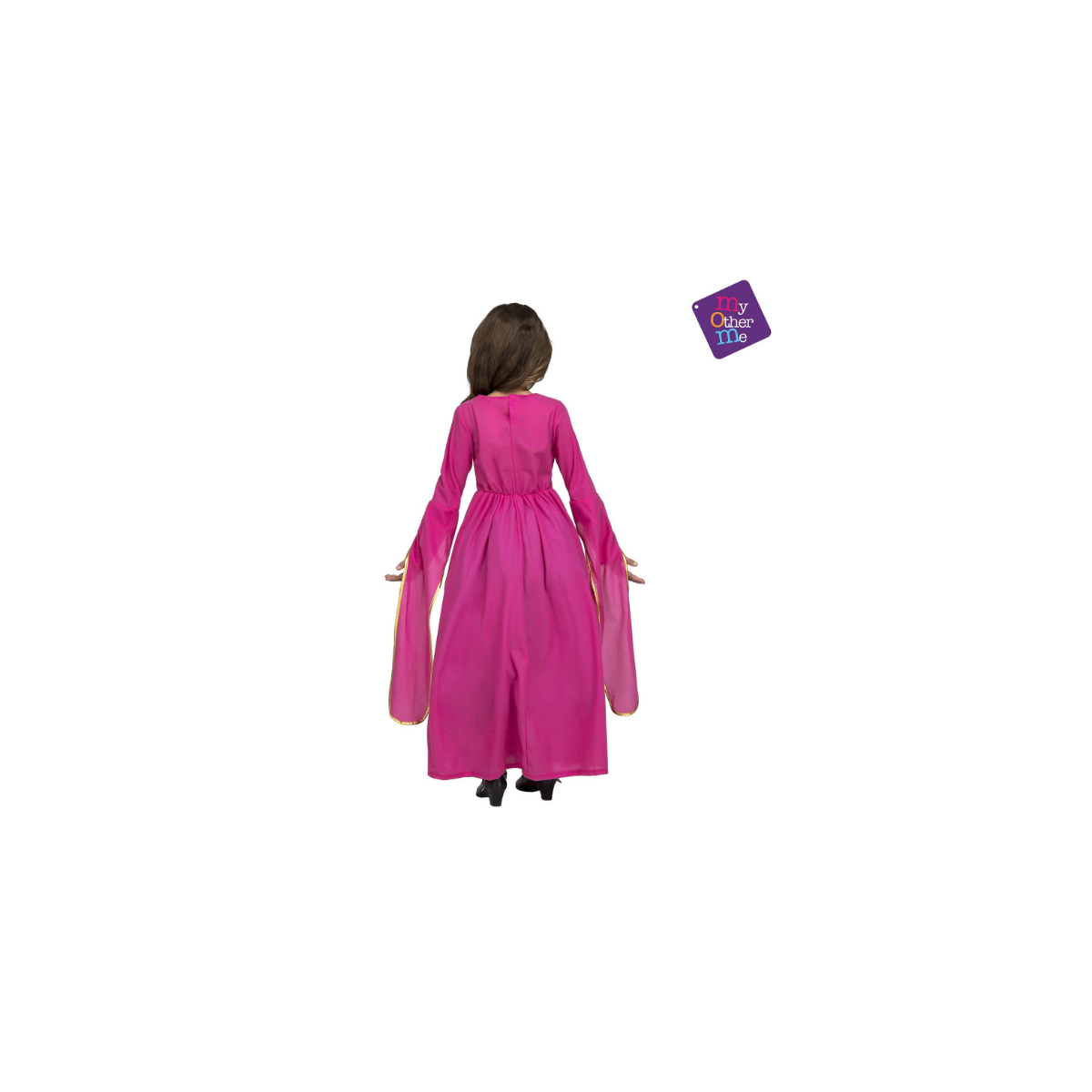 Un vestido digno de un gran salón del castillo. Este disfraz de princesa medieval en color rosa intenso es perfecto para niñas que sueñan con historias de reinos, bailes y aventuras mágicas.