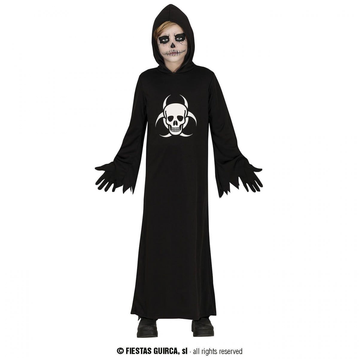 Comodidad y terror se juntan en este disfraz de calavera encapuchada, para peques de entre 7 y 9 años.